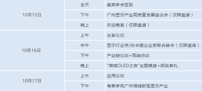 為(wei)共(gong)(gong)同促進全球(qiu)OLED產(chan)業(ye)(ye)在(zai)后疫(yi)情時代(dai)實現(xian)新一輪的(de)(de)發展,加(jia)強全球(qiu)OLED產(chan)業(ye)(ye)鏈(lian)企業(ye)(ye)間更(geng)加(jia)緊密的(de)(de)交流與合作,推(tui)動中(zhong)國(guo)OLED產(chan)業(ye)(ye)全產(chan)業(ye)(ye)鏈(lian)創新發展,在(zai)廣州(zhou)市政府和中(zhong)國(guo)電子視像行(xing)業(ye)(ye)協會(hui)的(de)(de)共(gong)(gong)同支持下,2020中(zhong)國(guo)國(guo)際OLED產(chan)業(ye)(ye)大(da)會(hui)將于2020年(nian)(nian)10月15-17日在(zai)廣州(zhou)增城長風凱萊酒(jiu)店舉(ju)辦(ban)。大(da)會(hui)以(yi)“柔顯賦能5G新時代(dai)”為(wei)主(zhu)題(ti),延(yan)續(xu)大(da)會(hui)的(de)(de)高(gao)規格和高(gao)水準(zhun),繼續(xu)完善高(gao)峰(feng)論壇、高(gao)端訪談、精品(pin)展覽(lan)和行(xing)業(ye)(ye)優秀企業(ye)(ye)評選四大(da)版塊,匯聚OLED全產(chan)業(ye)(ye)鏈(lian)相關行(xing)業(ye)(ye)組織負責人、企業(ye)(ye)家、技(ji)術專家、學者、教授、工程(cheng)師以(yi)及金融界、投資界、媒體界的(de)(de)各路精英共(gong)(gong)襄盛會(hui)。本次大(da)會(hui)將再次成為(wei)全球(qiu)OLED產(chan)業(ye)(ye)界聚焦(jiao)的(de)(de)年(nian)(nian)度盛會(hui)。
