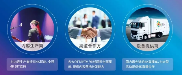 4K花園與阿里云、華為、索尼、迅雷已達成戰略合作,同時與廣電、電信運營商及國內外視頻運營主體展開積極合作,攜手產業鏈重量級合作伙伴,共同推動產業發展,打造健康、快樂、多贏的4K生態。