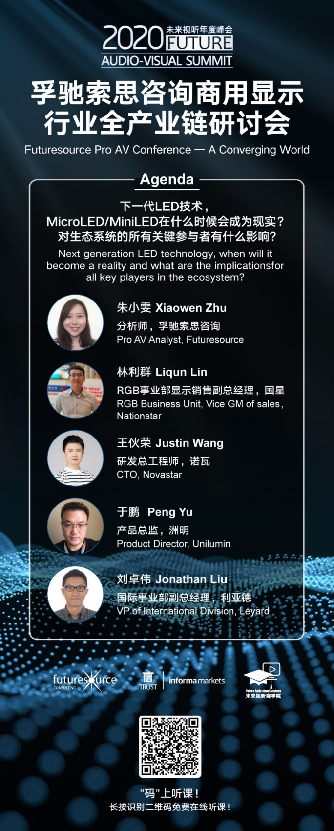 未來視聽年度峰會在LED CHINA 2020 期間,聯合了總部在英國的專業市場研究和咨詢公司Futuresource,舉辦了【孚馳索思咨詢商用顯示行業全產業鏈研討會】——互聯互通的世界。以下為會議內容的部分摘要。