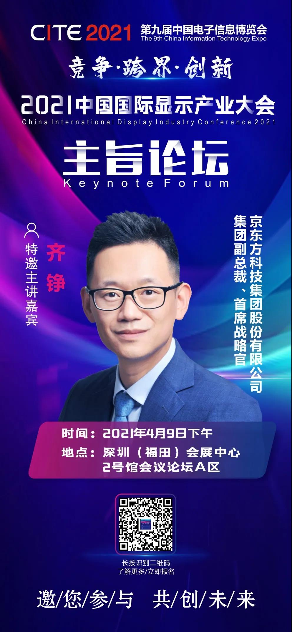 齊錚先生,西安電子科技大學通訊工程專業碩士,清華大學經濟管理學院MBA,現任京東方科技集團股份有限公司副總裁、首席戰略官,負責集團市場洞察、戰略管理、戰略營銷、戰略合作等業務。