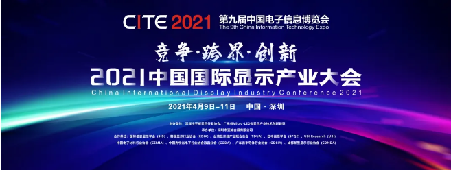 2021年4月9日—11日,以“創新驅動 高質量發展”為主題第九屆中國電子信息博覽會(CITE 2021)將在深圳會展中心盛大舉辦。展會同期將舉辦2021中國國際顯示產業大會,本次大會將聚焦顯示產業各領域熱點話題,通過豐富多彩的系列活動,共同探索行業新機遇,共促行業新發展。