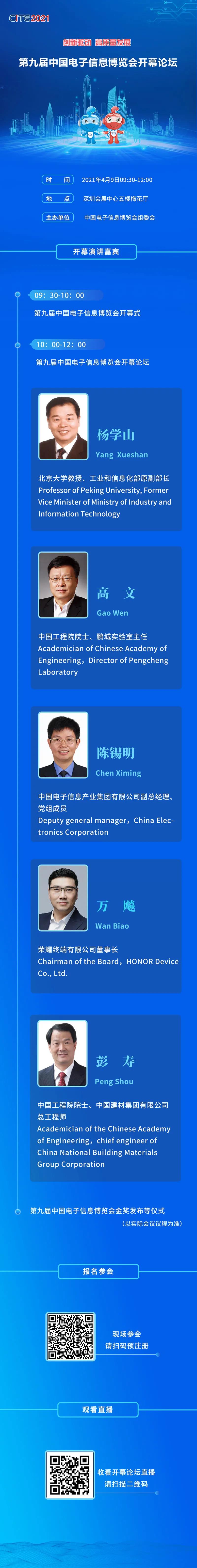 第九屆中國電子信息博覽會開幕論壇議程及演講嘉賓重磅揭曉!