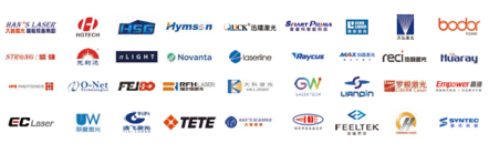 大族、華工、宏山、海目星、迅鐳、智能普睿瑪、領創、天弘、邦德、盛雄、光韻達、恩耐、Novanta、利澤萊恩、銳科、創鑫、熱刺、華瑞、海富光子、昂納、飛博、瑞豐恒、大科、光威、聯品、羅根、嘉強、崗春、聯贏、逸飛、泰德、大族思特、菲鐳泰克、鼎鑫盛、卡門哈斯、新代科技等。