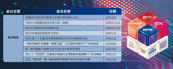 此外,由電子制造產業聯盟及天津、廣東SMT專委會聯合主辦的2021《“快克杯”全國電子制造行業焊接能手選拔賽》廣東分賽區、2021“望友杯”第一屆全國電子制造行業PCBA設計大賽等主題活動也將精彩上演。