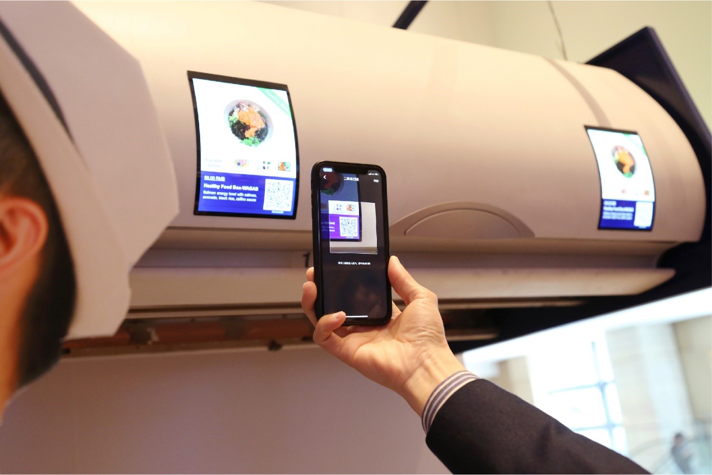 柔宇科技與空客聯合研發適用于空中客車機艙的可折疊全柔性屏,大小約8英寸,可觸控交互、顯示行李艙容量、實時播放機艙信息。屏幕上可自定義二維碼,乘客可以通過掃碼,輕松實現點餐、打游戲、觀看視頻等功能。