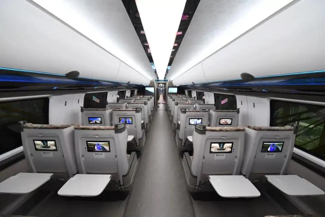 圖 | 柔宇與中國中車合作,成為世界首套設計時速達600公里的高速磁浮交通系統的座艙娛樂系統供應商。柔宇生產的全球最大尺寸的可量產全柔性屏,以輕、薄、柔、艷、可卷曲、可彎折等特性,完美契合車廂客艙內的座椅設計,為乘客提供了椅背屏的娛樂系統,沉浸式體驗極致的大屏影音。