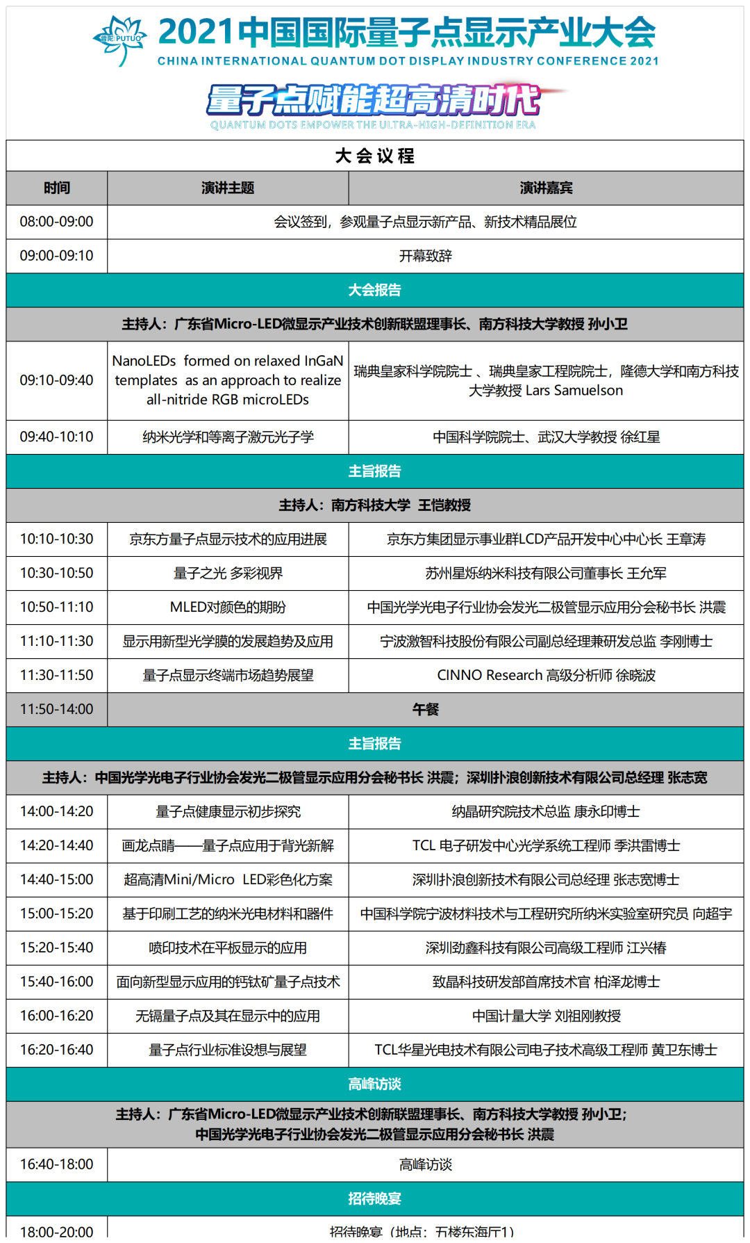 2021中國國際量子點顯示產業大會將于2021年12月3日在浙江舟山普陀舉行,本次大會以“量子點賦能超高清時代”為主題,邀請國內外知名行業專家、學者、企業負責人等共同參會,共同迎接量子點顯示技術發展新機遇!