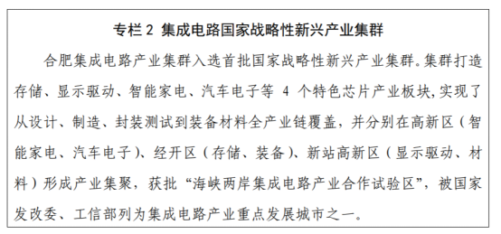 重點發展支柱產業。聚焦產業現有發展基礎,重點支持新型顯示、集成電路、人工智能及高端軟件等支柱產業發展,打好產業基礎高級化和產業鏈現代化攻堅戰。支持各領域龍頭企業加大創新投入、突破核心技術、推進重點工程,縱深推進“芯屏汽合”產業融合發展,為構建合肥經濟社會發展新格局提供強大支撐。