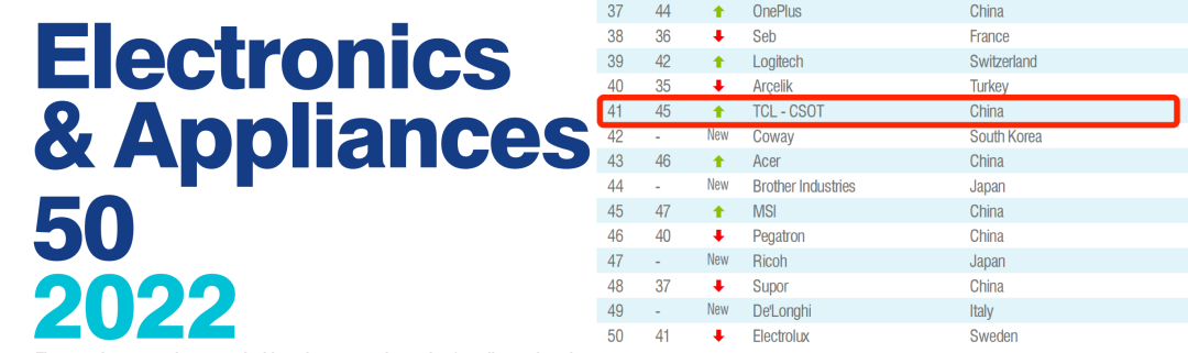 近日,英國品牌評估機構“品牌金融”(Brand Finance)發布2022“全球電子家電品牌價值50強”排行榜(Electronics & Appliances 50 2022),蘋果、三星、華為名列前三。50大電子家電品牌總價值7544億美元,其中20個中國品牌總價值1533億美元,占比20.3%。而TCL華星作為半導體顯示領域領先企業之一,品牌價值大漲81%,與北美、西歐、日韓等地的國際消費電子廠商同場競技榜上有名,讓品牌的強勢發展吸引了更多關注。