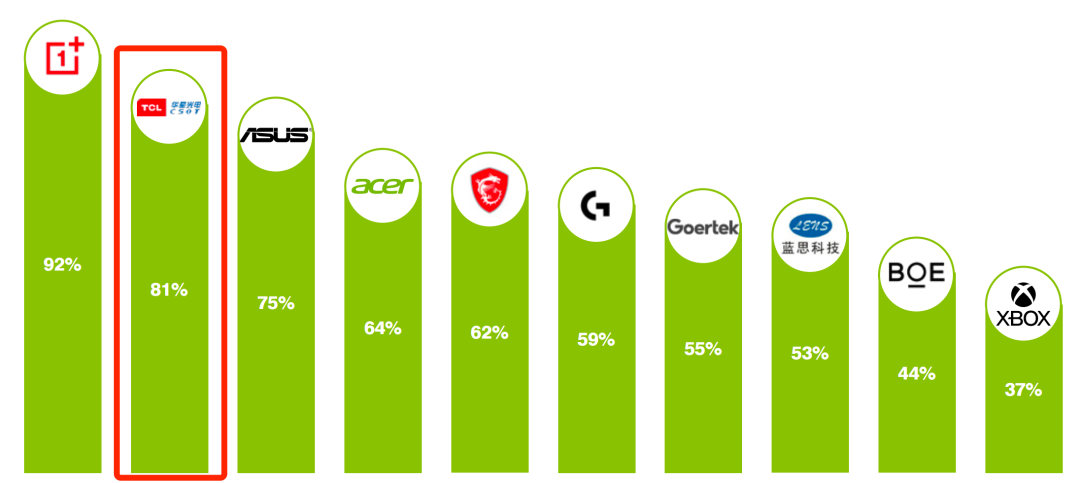 2021年,TCL華星在TV面板市場份額全球第二,55吋產品份額全球第一,65吋和75吋產品份額全球第二,在8K和120Hz高端電視面板市場份額全球第一;商顯產品出貨量全球第二,其中,交互白板市場份額位居全球第一,數字標牌全球第二,拼接屏全球第四;高端電競產品市場份額全球第二,34吋與49吋電競帶魚屏出貨量全球第一,27吋與32吋電競屏出貨量全球第二;LTPS平板面板出貨量全球第一;LTPS筆電面板出貨量全球第二;小尺寸LTPS手機面板與柔性OLED手機面板出貨量全球前四。