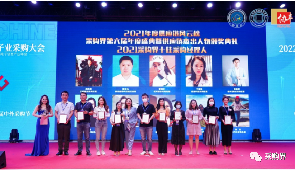 十佳采購經理人:是推動采購專業化人才隊伍建設具有象征意義的活動,為支持與鼓勵在采購行業和企業做出突出貢獻和努力的采購精英,特評選出年度“十佳采購經理人”榮譽。2021年度十佳采購經理人獲獎名單:正威集團采購總監邢其軍、康佳通信供應鏈總經理楊文玉、拓邦股份采購經理曹輝玲、普渡科技采購經理王美祥、綠米聯創采購經理張海軍、奧普特股份采購經理榮巧月、駿威實創采購經理曹艷、金宏源采購經理羅燕容、普榮實業采購總監宮朝陽、朝華芯科采購總監陳佳。