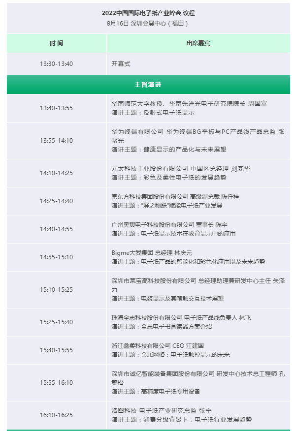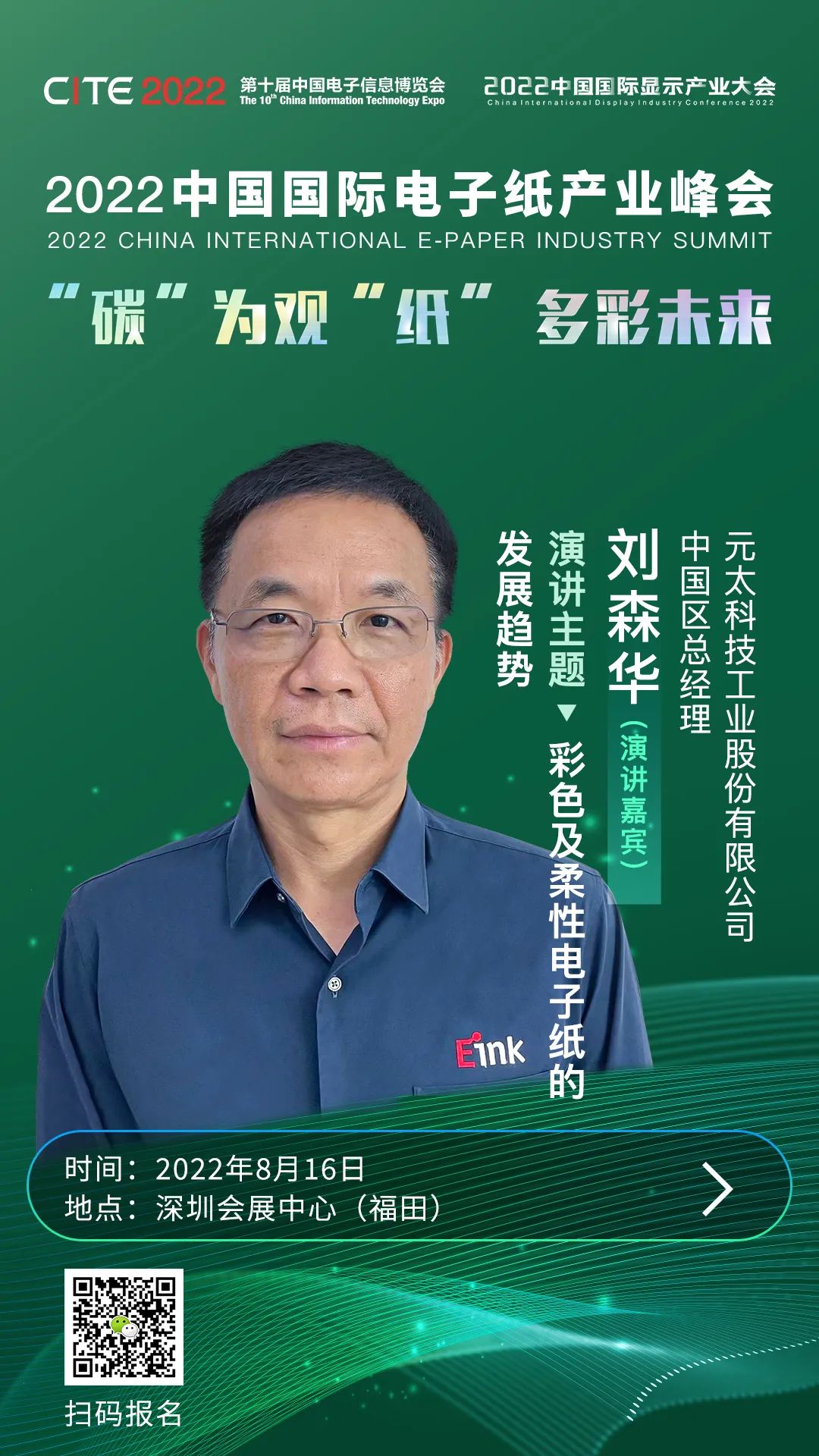 作為第十屆中國電子信息博覽會(CITE2022)同期論壇活動——2022中國國際顯示產業大會的系列活動之一,以“‘碳’為觀‘紙’ 多彩未來”為主題的2022中國國際電子紙產業峰會將于8月16日在深圳舉行。大會已邀請到京東方、華為、E Ink元太科技、廣州奧翼、Bigme大我集團、萊寶高科、全志科技、鑫柔科技、誠億智能裝備等名企,以及華南師范大學、洛圖科技等專業院校、研究咨詢機構,從顯示技術、行業發展、應用場景等方面做主題分享,共同為電子紙產業健康發展集思廣益。