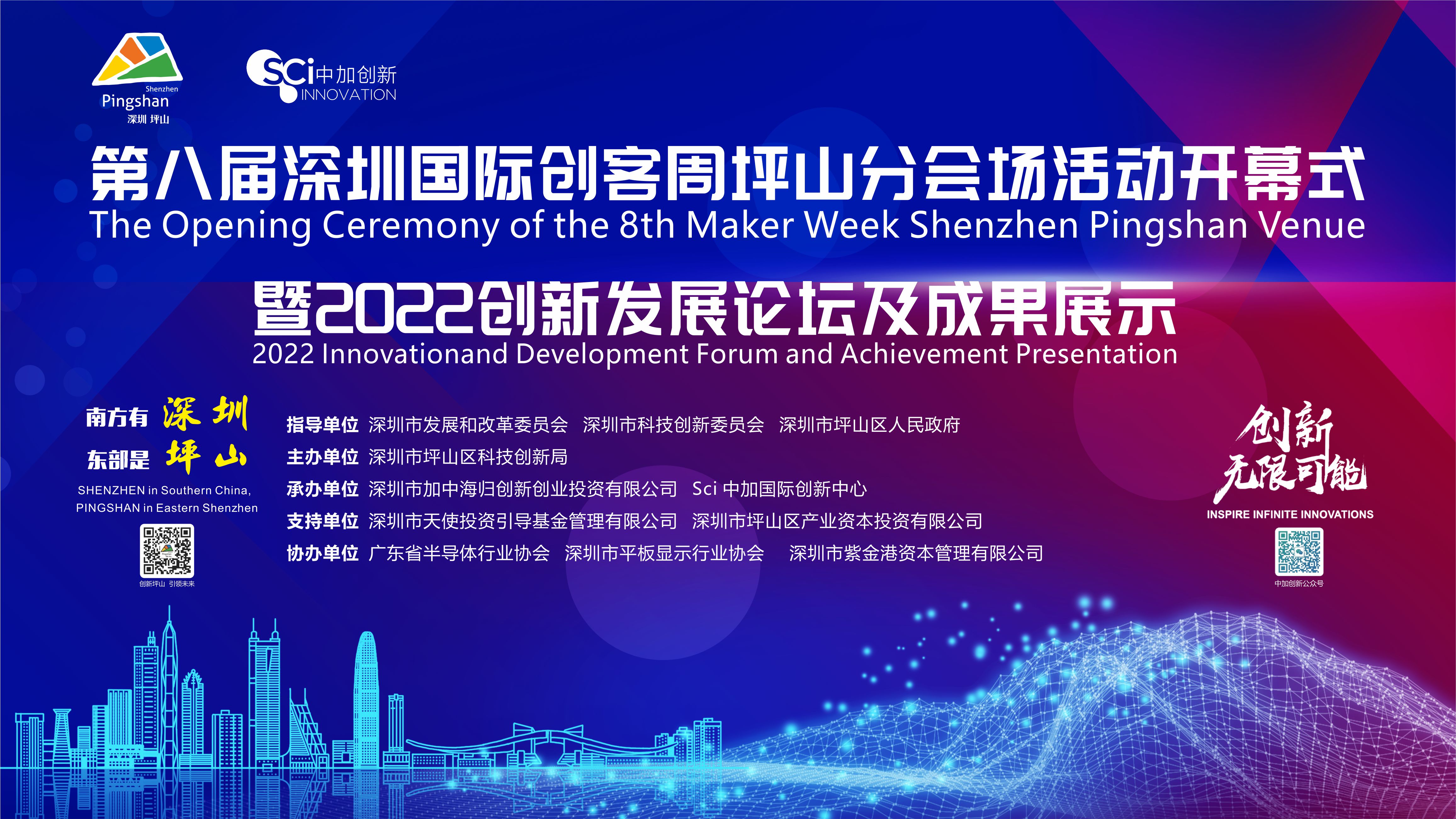 第八屆深圳國際創客周坪山分會場活動開幕式暨2022創新發展論壇及成果展示(以下簡稱“本次活動”)即將于9月14日在深圳坪山創新廣場一樓大會議廳(東部之芯)啟幕。