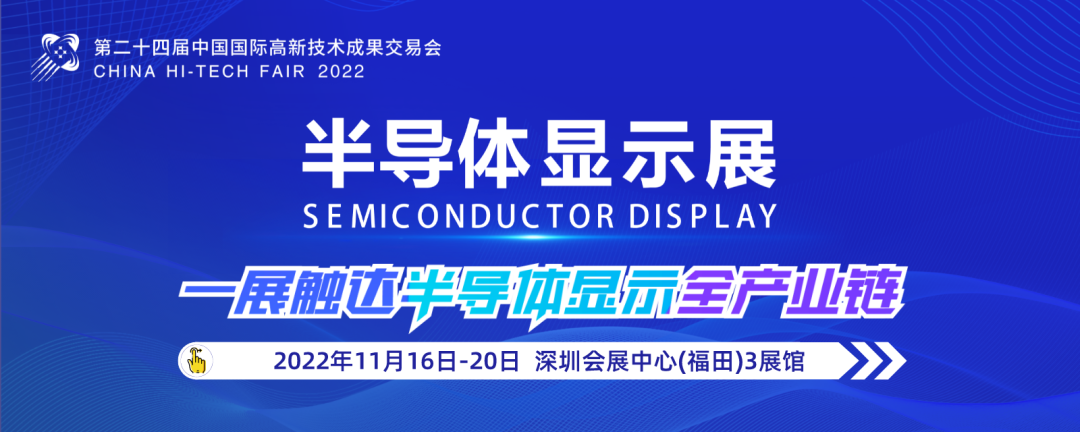 2022年11月16日-20日,深圳會展中心(福田)3展館,讓我們相約第二十四屆高交會-半導體顯示展!展示范圍涵蓋顯示技術、應用、材料及設備;半導體材料、設計、設備等熱點內容!