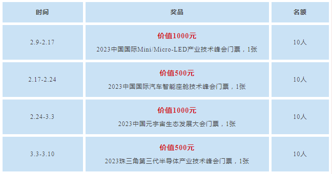 ? 2月9日-2月17日,轉發本文至朋友圈,贏取價值1000元的2023中國國際Mini/Micro-LED產業技術峰會門票,趕快行動吧!名額有限,先到先得!