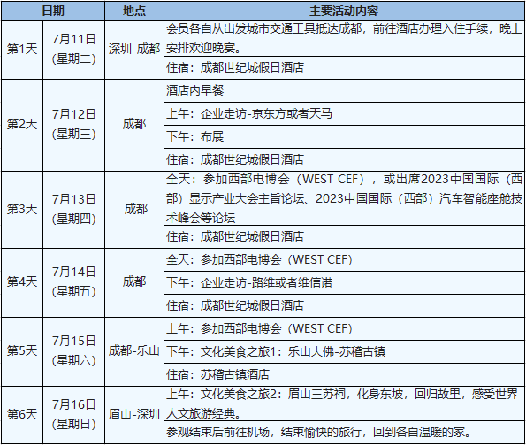 此次活動之行,SDIA還將與成都當地知名的半導體顯示企業緊密聯系,組織實地考察與參觀,開展產業對接,加深溝通交流等,為您量身訂制專屬參展、參團方案,讓您此次旅程事半功倍。
