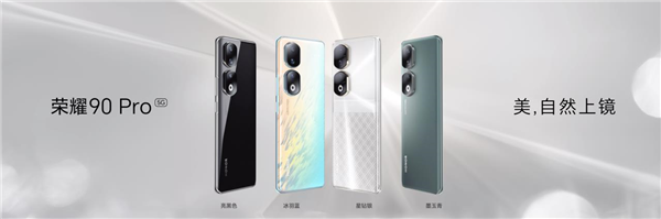 工業設計上,榮耀90系列采用全新的鏡頭設計,從文藝復興時期的建筑拱廊中汲取設計靈感,提供四款潮流配色:星鉆銀、冰羽藍、墨玉青、亮黑色。