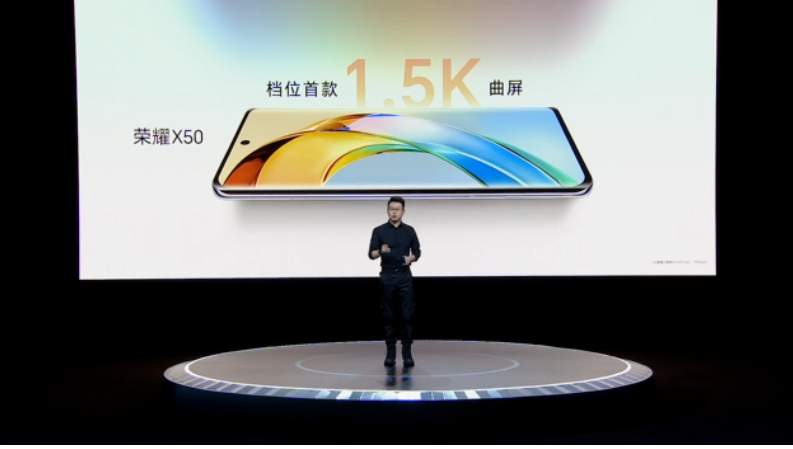 榮耀 X50 采用檔位首款 1.5K AMOLED曲屏(維信諾主供),尺寸為 6.78 英寸,支持 10.7 億色彩顯示、1200nit 峰值亮度、120Hz 屏幕刷新率、100% DCI-P3 色域、1000Hz 瞬時觸控采樣率。