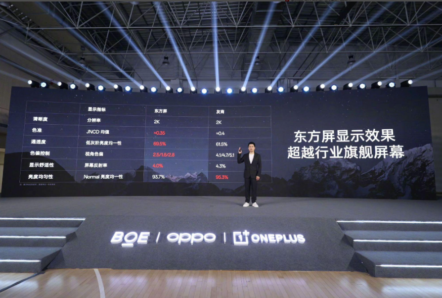 使用壽命方面,“東方屏”通過一加和京東方聯合研發的多項行業首創的工藝、技術和電路設計,使用壽命達到行業均值的 2 倍以上。
