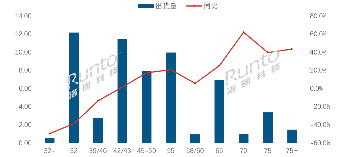 尺寸格局:32寸下降超3成,大尺寸全面大漲
