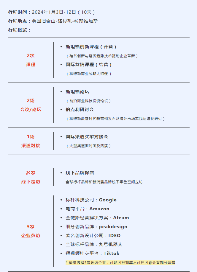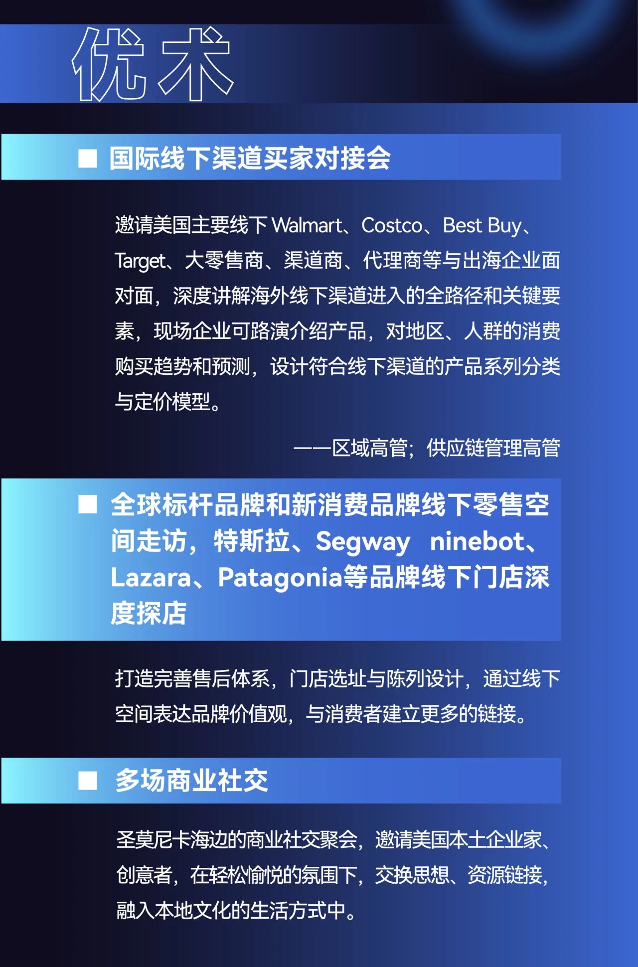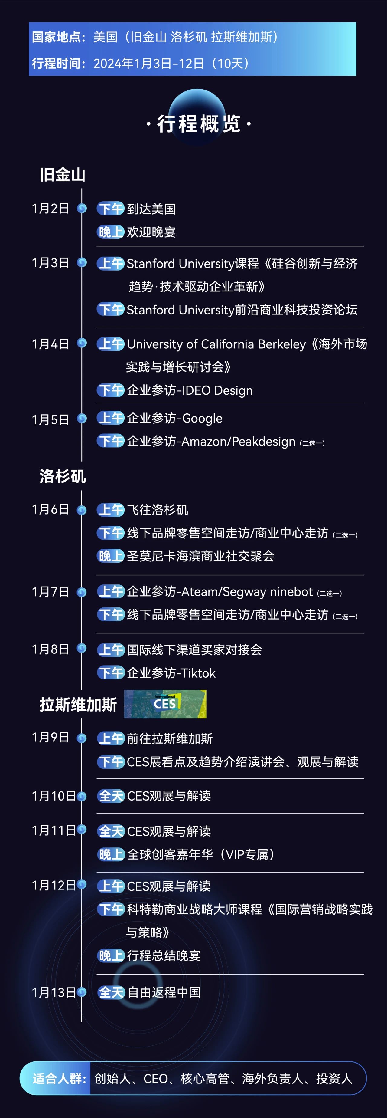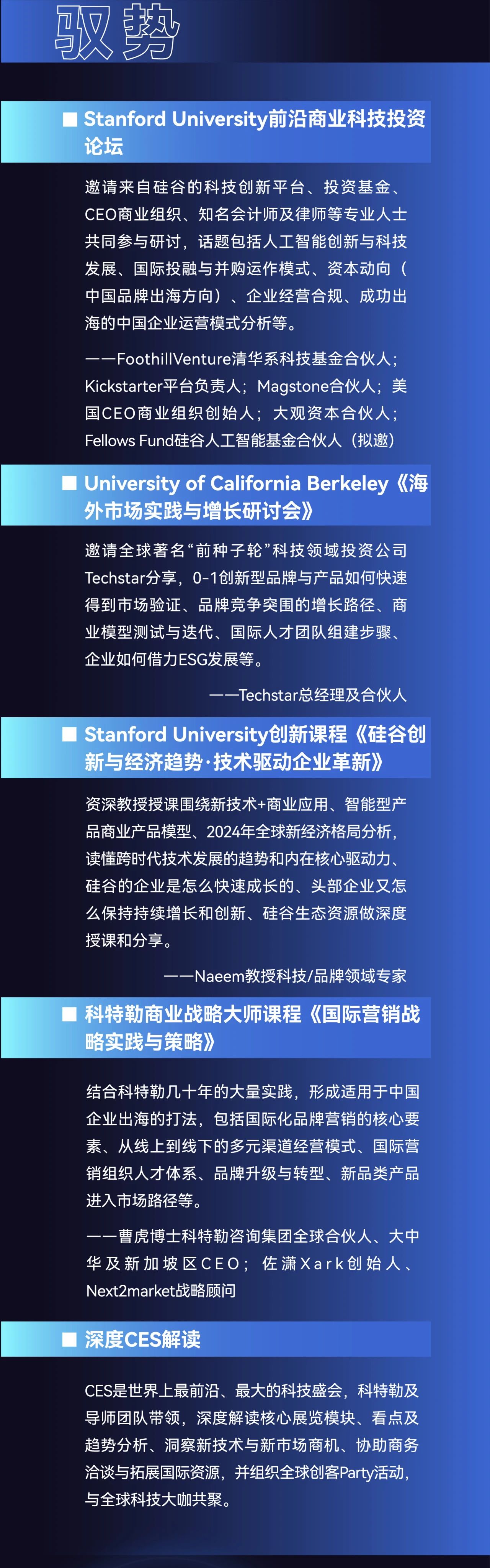 2024年(nian)1月,深(shen)圳市平板顯(xian)示(shi)行業(ye)(ye)協會(SDIA)將(jiang)與(yu)科特勒(le)&Xark導(dao)師團,帶領中國(guo)標桿企業(ye)(ye)、細(xi)分領域冠軍(jun)企業(ye)(ye)、創(chuang)新型(xing)企業(ye)(ye)出行美(mei)國(guo),與(yu)全球領先企業(ye)(ye)面(mian)對面(mian)研(yan)(yan)討,開展(zhan)大型(xing)渠道合(he)作洽談與(yu)投資(zi)平臺(tai)鏈接、頂級教授交流等(deng),同時參加(jia)“2024年(nian)CES美(mei)國(guo)國(guo)際消(xiao)費類電(dian)子(zi)產品(pin)展(zhan)覽”研(yan)(yan)學(xue)營,聆聽(ting)專家解讀(du)智能科技消(xiao)費電(dian)子(zi)和品(pin)牌塑造(zao)新機遇!