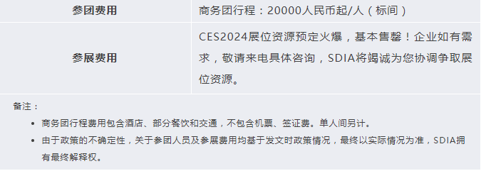 為助力廣(guang)大(da)半導體顯示、電子信息、科技類等領域企業(ye)及行業(ye)同仁更(geng)加廣(guang)泛地參(can)與CES2024,同時應企業(ye)多層次、深度化的學習提升(sheng),海外人(ren)脈、資源、市(shi)場(chang)拓展需求(qiu),SDIA以(yi)CES2024展會(hui)為契機,推出多個(ge)CES組團方案,以(yi)滿足企業(ye)不同需求(qiu)。