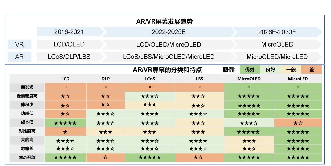 XR的發(fa)展不會一(yi)蹴而(er)就,XR顯(xian)(xian)示的技(ji)術路線之爭自然持續(xu)。根據群智咨詢統(tong)計,2022年XR頭(tou)顯(xian)(xian)用面板(ban)以Fast-LCD為(wei)主,占比高(gao)達94%。年初有(you)消息稱,蘋(pin)果和Meta正在國內尋找Micro LED微顯(xian)(xian)示器件(jian),并已在多家(jia)公司(si)下(xia)了數筆訂單,用于(yu)AR眼鏡的概念驗(yan)證(POC)。Micro LED在對比度、反(fan)應性、壽命、省電等(deng)諸多性能(neng)表現上優于(yu)硅(gui)基(ji)OLED,但目前Micro LED處于(yu)發(fa)展初期,存在全彩(cai)化(hua)技(ji)術瓶頸,巨(ju)量轉移工藝成(cheng)熟度不足(zu),難以量產,還有(you)許多挑戰(zhan)待克(ke)服。但是,未來Micro LED發(fa)展成(cheng)熟后,存在替(ti)代硅(gui)基(ji)OLED市場的可能(neng),除非硅(gui)基(ji)OLED足(zu)夠便宜。
