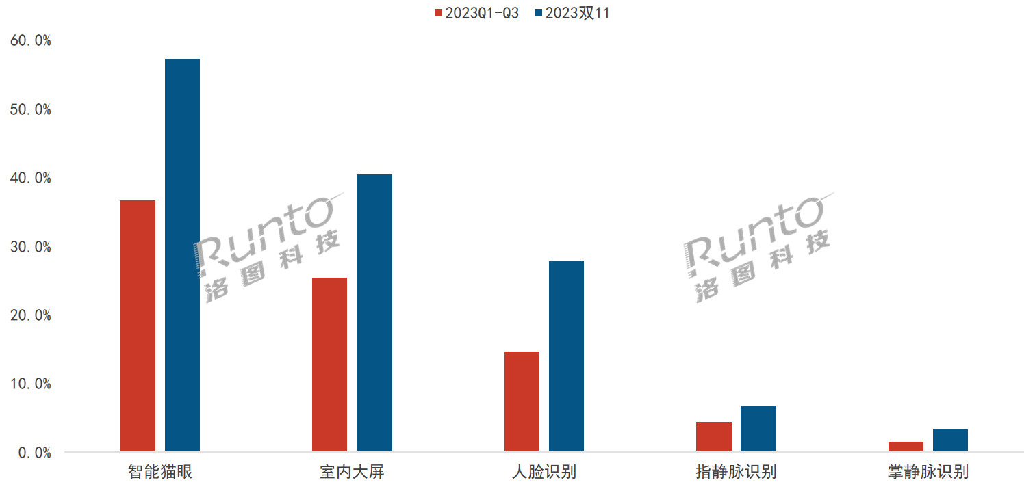 2023雙十一大促 中國智能門鎖線上市場功能滲透率