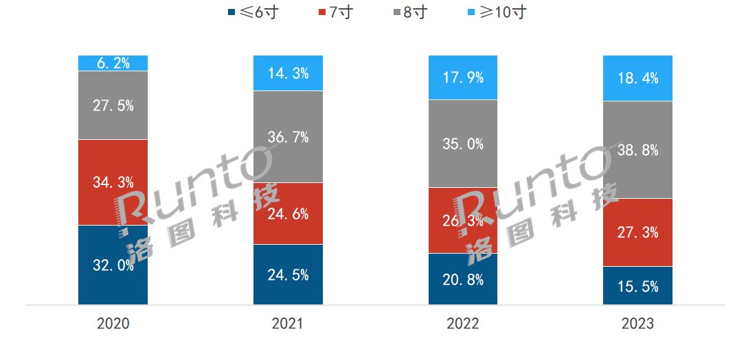 2020-2023年 中國帶屏智能音箱市場尺寸銷量份額