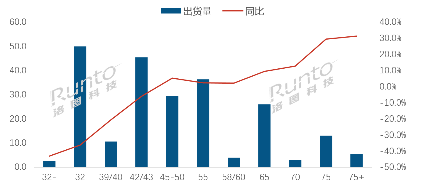 尺寸格局:75+寸漲幅第一,達31.3%;75寸上漲29.5%