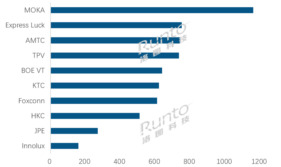 --HKC(惠科)當月出貨超過50萬臺,排名專業代工廠第八,同比亦大幅增長超過60%,環比基本持平。