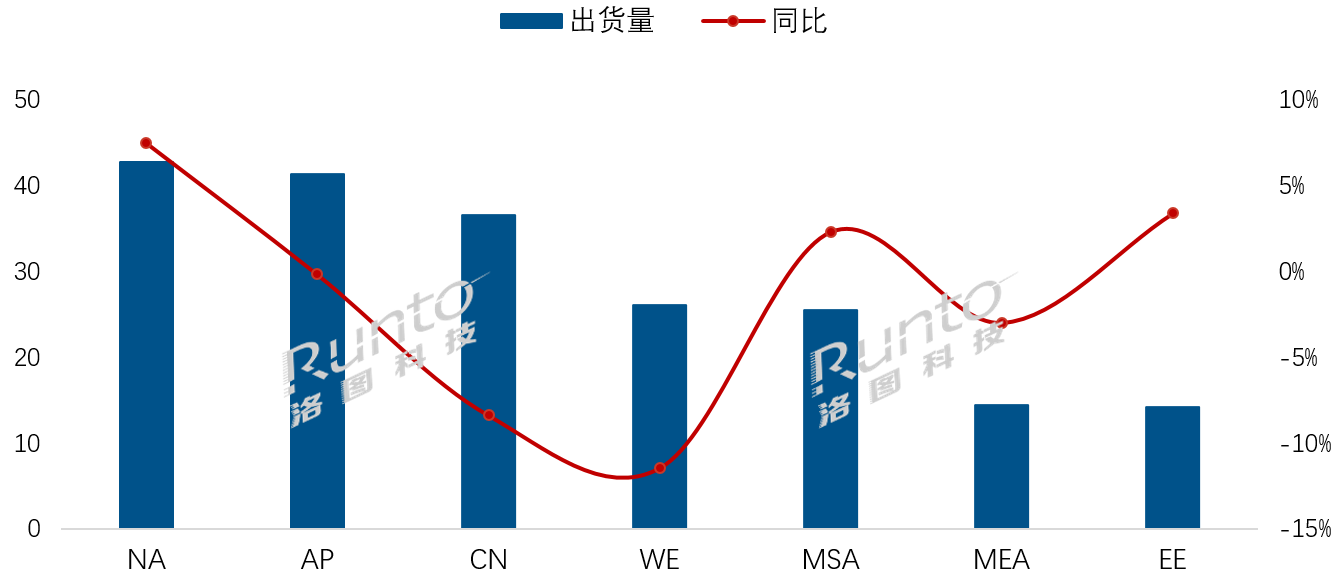 注:NA-北美、AP-亞太(不含中國)、CN-中國、WE-西歐、MSA-拉美、MEA-中東非、EE-東歐