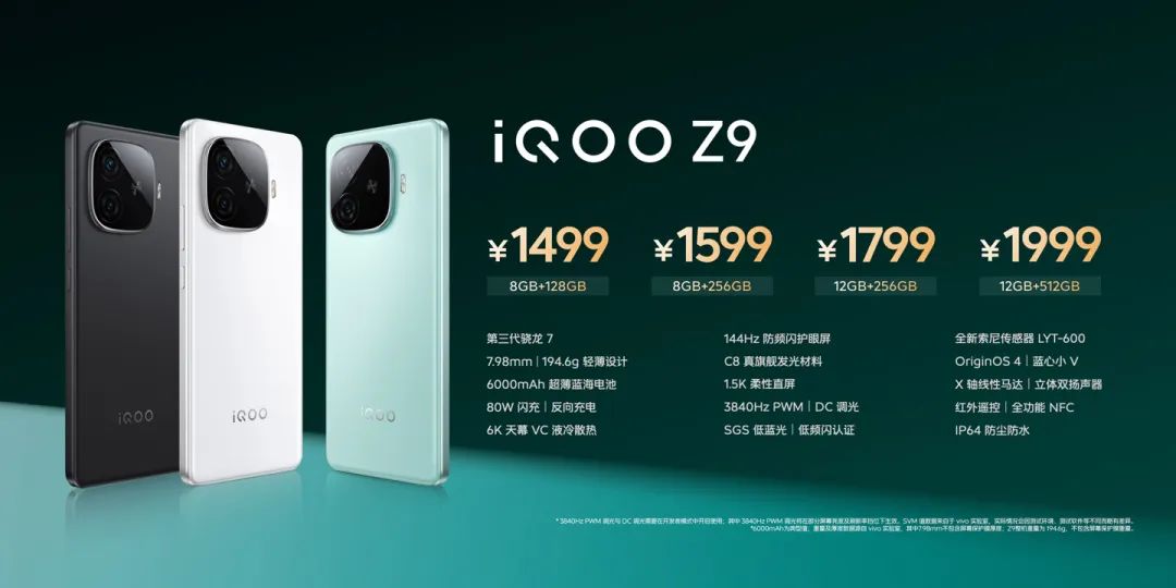 4 月 25 日消(xiao)息,iQOO Z9 系列手機昨日正式發布,其中 iQOO Z9 Turbo 1999 起(qi),iQOO Z9 1499 起(qi),iQOO Z9x 1149 起(qi),4 月 29 日開售,匯總價(jia)格如下: