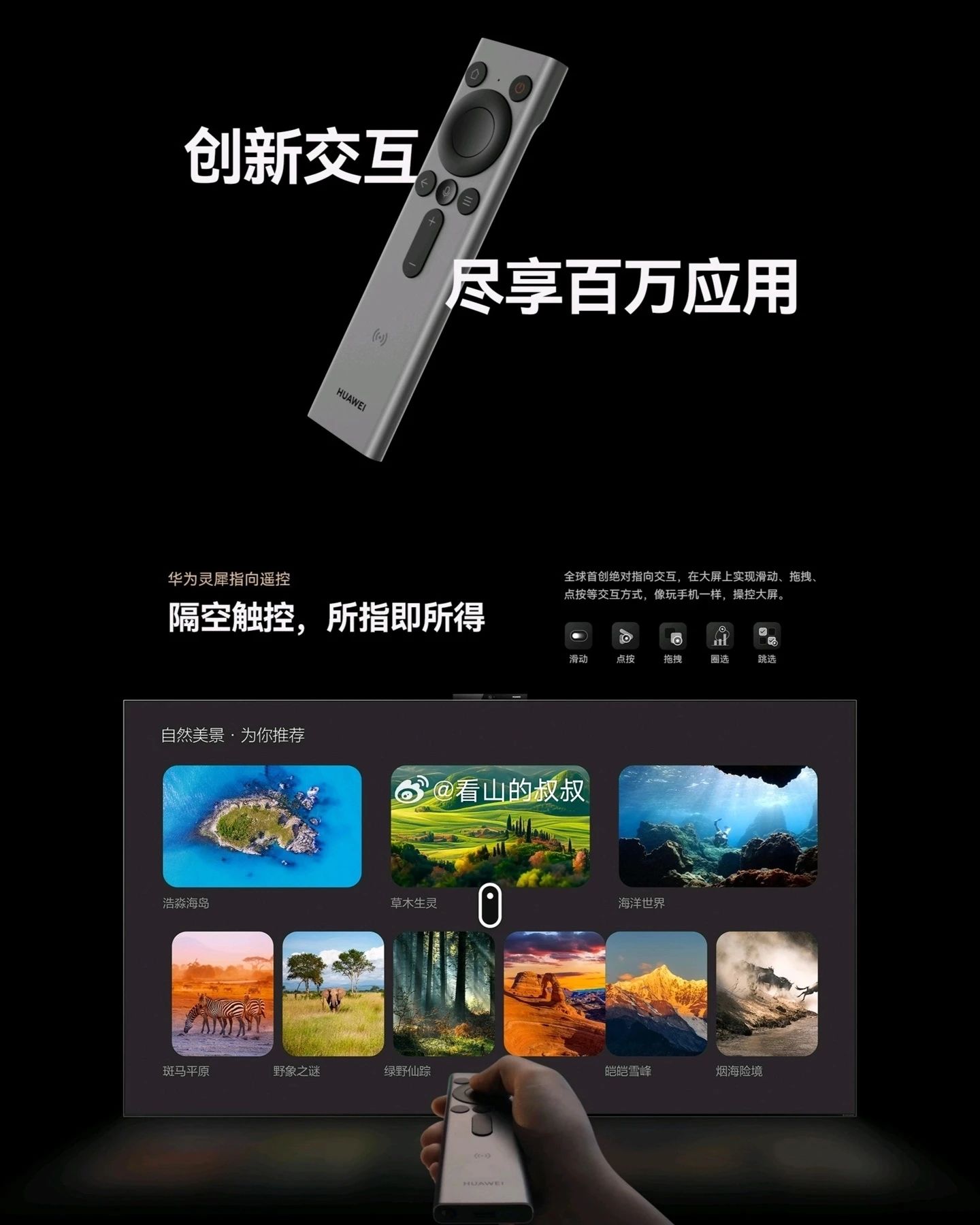 華(hua)為 Vision 智慧屏 4 是(shi) 5000 檔位首款搭載華(hua)為靈犀指向(xiang)遙控的智慧屏,通過(guo) UWB 技術,一指即控,遙控器指哪點哪如同激光筆,實現精準(zhun)隔空觸控,滑(hua)動拖(tuo)拽操作如同玩手(shou)機,還原手(shou)機操控習(xi)慣。