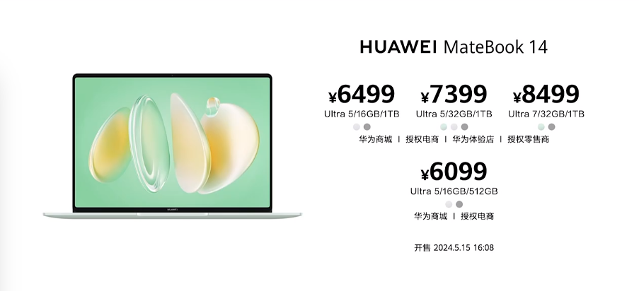 目前(qian),華為新(xin)款 MateBook 14 已經正式發布開(kai)售(shou),售(shou)價(jia) 6099 元起,具體價(jia)格(ge)如(ru)下(xia)圖: