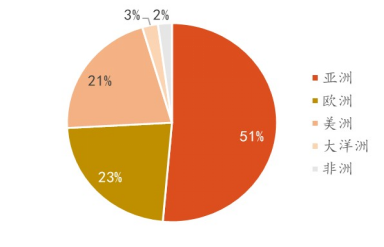2023年LED顯示屏出口遭遇挑戰。根據海關最新數據,2023年中國LED顯示屏出口額為102.54億元,相比2022年同比下降7.4%。從地區來看,亞洲市場份額占到出口總額一半,其中東南亞市場、中東市場活躍,其次是歐美、南美洲等地區。2023年LED顯示屏出口下滑的原因我們認為是受到全球經濟疲軟和地緣政治風險,而東南亞、中東等新興市場可能會成為國內LED廠商出口的重要目的地。