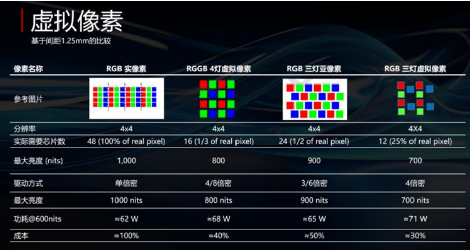 IMD封裝:即將兩個及以上的像素結構集合在一個封裝單元里,目前以四合一技術應用最為成熟。“四合一”即一個封裝結構中有四個基本像素結構,其本質上依然是四個由12顆MiniRGB芯片合成的“燈珠”,但是較難實現更小間距顯示;