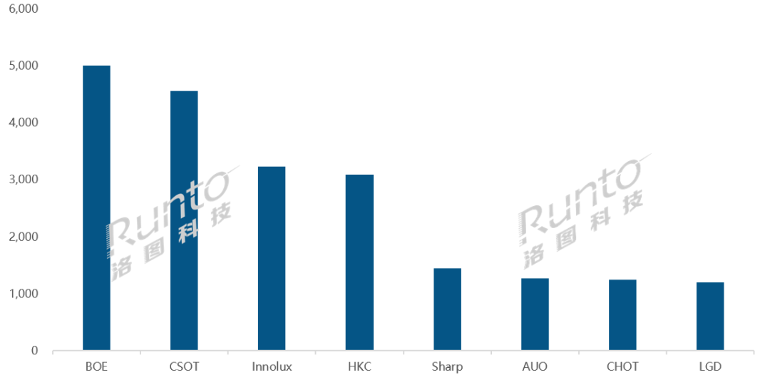 日韓系面板廠的合并市占為12.7%,同環比均有增長,增幅分別為3.2和0.5個百分點。