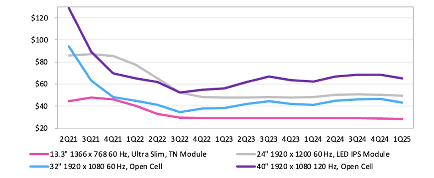 2021-2025年筆記本電腦、顯示器面板價格預測(來源:Omdia)