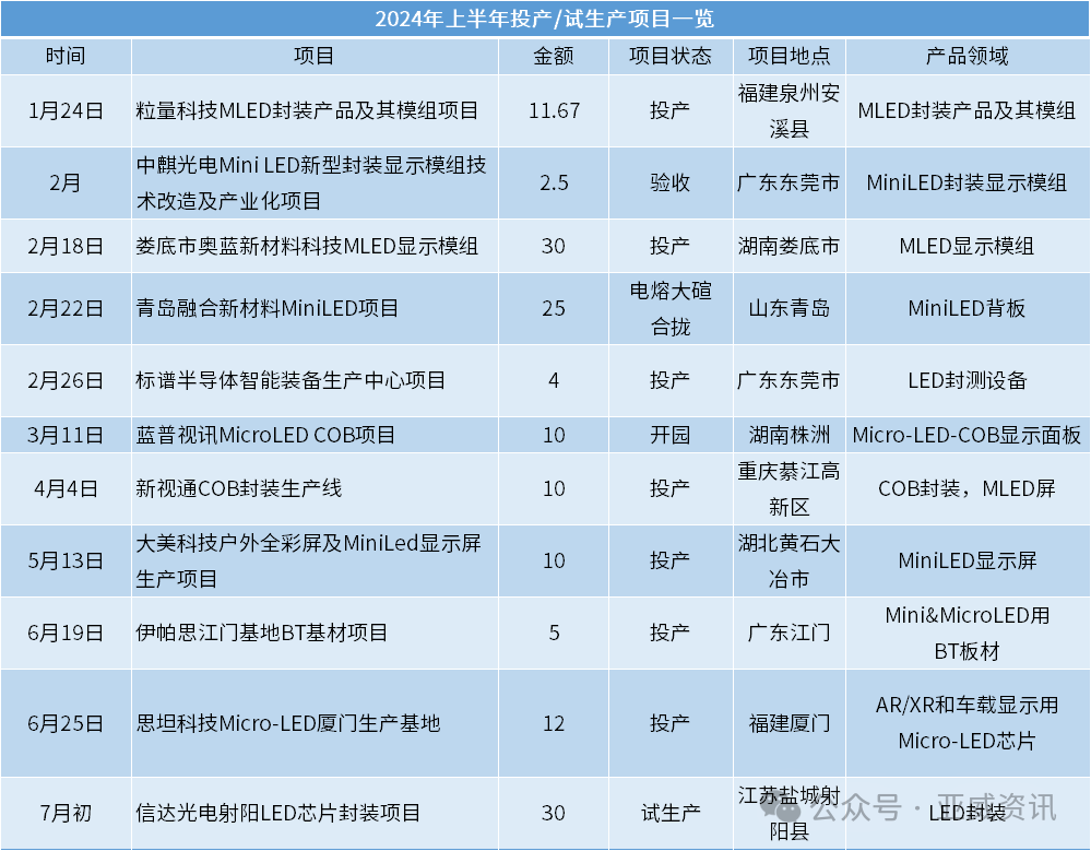 據不完全統計,2024年上半年我國MLED相關新簽約、開工、封頂、投產項目投資金額近千億元。