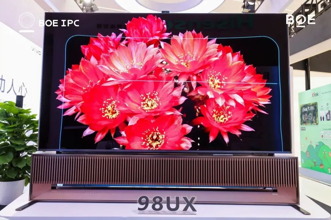 在合作伙伴展區內,電視產品方面,京東方展出了搭載京東方ADS Pro技術的海信98英寸原畫巨幕電視,實現264Hz超高刷新率,解決動態模糊、拖影與卡頓等痛點。