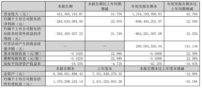 前(qian)三(san)季度,華映科技營業收(shou)入為13.16億(yi)(yi)元(yuan)(yuan),同比(bi)增長62.76%;歸屬于上(shang)市公司(si)股(gu)東的凈(jing)利潤為-8.48億(yi)(yi)元(yuan)(yuan),同比(bi)減少22.59%;扣(kou)除非經常性損(sun)益(yi)后的凈(jing)利潤為-8.64億(yi)(yi)元(yuan)(yuan),同比(bi)減少22.02%。