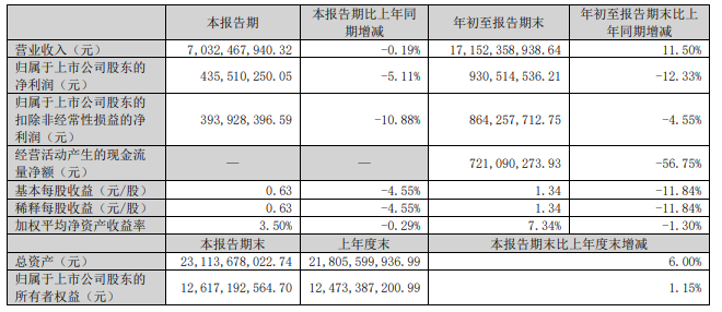 視源股份(fen)前三(san)(san)季度實(shi)現營(ying)收(shou)171.52億(yi)元,同比增長11.50%;實(shi)現歸母凈(jing)利潤9.30億(yi)元。其(qi)中(zhong)第三(san)(san)季度,視源股份(fen)實(shi)現營(ying)收(shou)70.32億(yi)元;實(shi)現歸母凈(jing)利潤4.36億(yi)元。