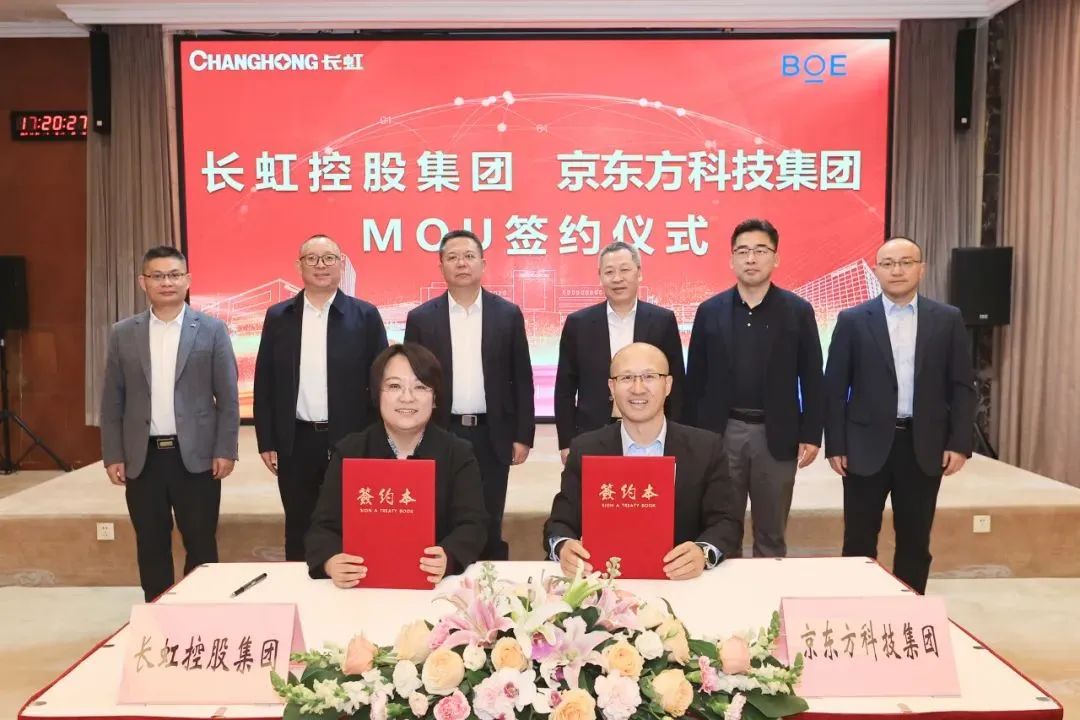 張英(ying)與(yu)王閏(run)企分別代表長虹控股集(ji)(ji)團(tuan)與(yu)京東方(fang)科技集(ji)(ji)團(tuan)簽(qian)署(shu)了2025年度MOU。