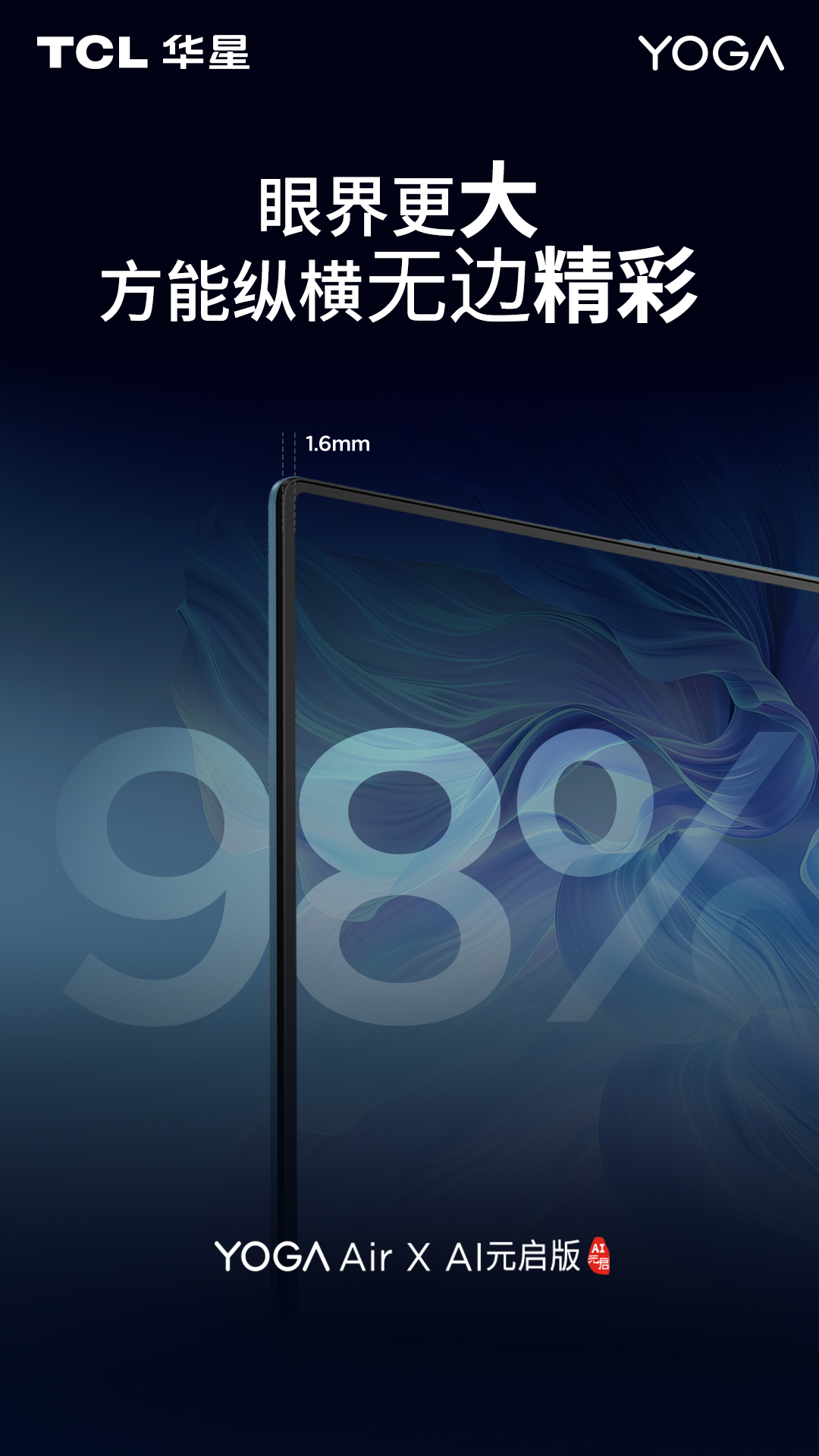 TCL 華星與聯想的深化合作,始終堅持以用戶需求為導向,深耕技術創新與產品升級,為全球消費者持續帶來更優質的顯示產品選擇,這與TCL華星先進顯示技術品牌APEX的價值主張高度契合。以YOGA Air X AI元啟版為例,其超清分辨率、豐富色域以及超高色彩精準度,為用戶帶來絕佳的“高畫質”呈現;120Hz的“高刷新率”帶來流暢、絲滑的操作體驗;4K PURESIGHT PRO OLED顯示器打造的高屏占比“無界”感官、沉浸式“全面屏”,為用戶提供舒適、無邊、極致的視覺體驗。從柔性OLED到折疊顯示,再到這款重磅新品,雙方在長久的研發與共創過程中,以前沿顯示科技賦能,探尋為全球消費者提供高品質視覺感官享受,更引領顯示行業一同“啟幕新元”,走向高質量發展。