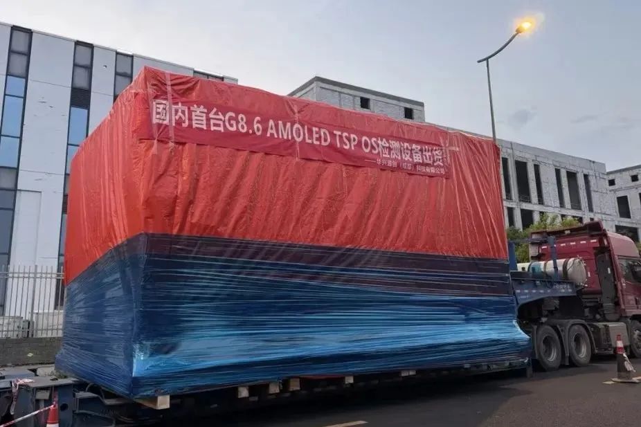 近日(ri),國(guo)內顯示裝備領(ling)域(yu)迎來重大突破(po)——華興源創成(cheng)都子公司自主研發(fa)的國(guo)內首臺G8.6 AMOLED TSP OS檢(jian)測設備正式(shi)出貨。這臺重達60噸的“龐(pang)然(ran)大物(wu)”不僅(jin)是技術攻(gong)堅的結晶,更標志著(zhu)我國(guo)在高世代AMOLED TSP OS核(he)心(xin)檢(jian)測設備領(ling)域(yu)實現了從0到1的跨越(yue)。