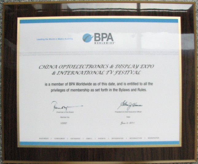 深圳光電顯示周暨中國國際彩電節認證報告可從BPA Worldwide網站上獲取。