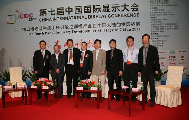 2011年11月18日下午,“2011海峽兩岸攜手探討觸控面板產業在中國大陸的發展戰略高峰對話”在深圳會展中心六樓桂花廳舉行,深圳市平板顯示行業協會觸摸屏分會秘書長徐世穎和臺灣電子設備協會理事長葉勝發共同主持了此次高峰對話。參與高峰對話的嘉賓臺灣和大陸各3人,他們是:臺灣TPK李裕文資深處長,勝華王文俊處長,奇美黃昆峰處長;大陸的是蕪湖長信陳奇總裁,愛發科豪威徐旻生副總經理,深越光電魏漢森副總監。這六人既有企業領導,也有技術人員和綜合管理人員,具有一定的行業代表性。參與高峰對話的現場來賓近150人見證并參與了此次論壇。
