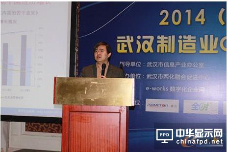 e-works總編黃培博士發表題為《制造業信息化發展趨勢與熱點分析》的主題演講。他分析了2013-2014制造業十大熱點以及兩化融合十大熱點。