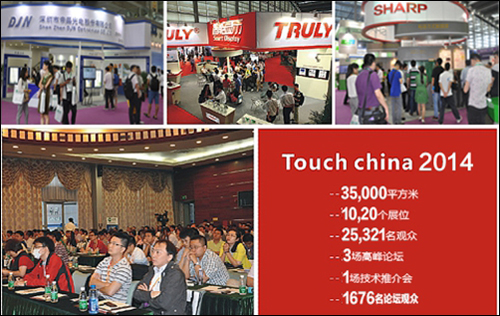 上屆展覽面積30000多平方米,展位數量1020個。包括夏普、歐菲光、合力泰、帝晶、創維、DIC、MCK、FUK、旭虹、環球光電、長興化學、東京應化、三鑫精美特、德龍激光、聯得、萬順光電、精工、三和、美麗華、臻興等在內400多家重點顯示觸控企業產業鏈企業參展. 約723家TP蓋板廠商參觀了展區。Touch China 2014年共吸引25321人前來觀展。